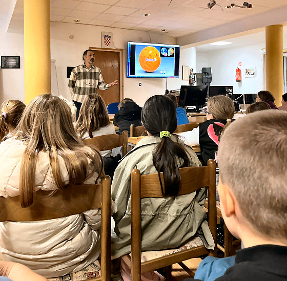 Za dvadesetak učenika nižih razreda OŠ Bol je u Gradskoj knjižnici Marka Marulića – Brodarica održano predavanje o Sunčevom sustavu, ali i likovna radionica oslikavanja planeta! Te je aktivnosti vodio student fizike splitskog PMF-a Duje Barić, član udruge Zvjezdano selo Mosor i astronomske sekcije Fizikalnog društva Split.