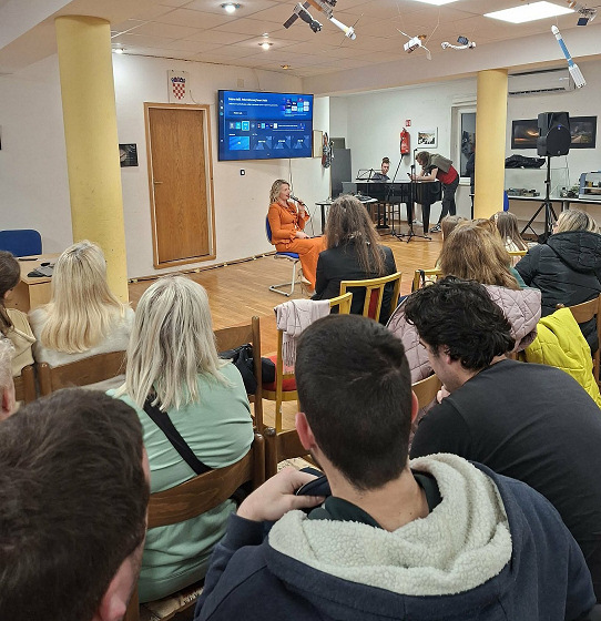 Školski zbor splitske OŠ Kman-Kocunar je pod ravnanjem profesorice glazbene kulture Mirele Todorić, na oduševljenje do posljednjeg mjesta ispunjene velike dvorane zvjezdarnice izveo niz raznovrsnih pjesama.