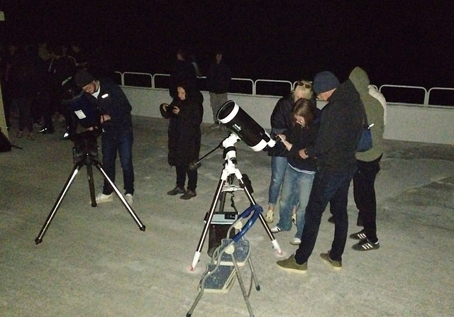 Kako je večer bila posve vedra, nakon predavanja je s terase zvjezdarnice bilo provedeno i astronomsko promatranje neba. U okularima dvaju teleskopa su se našli Jupiter, Mjesec i zvjezdani skup M13, a prisutni su mogli naučiti i kako pronaći Sjevernjaču, te koje su najsjajnije zvijezde ovih dana vidljive iznad naših glava. Promatranje je vodio astronom-animator Zvjezdanog sela Mosor Zoran Knez, uz asistenciju mladih članova udruge Luke Jerčića i Duje Barića.