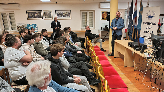 Prije početka predavanja, prisutne je pozdravio i predavača predstavio Tomislav Nikolić, tajnik Zvjezdanog sela Mosor. Predavanju je prisustvovalo i tridesetak učenika Prirodoslovne škole Split, koje su vodili njihovi nastavnici Marijan Anđelko Hadjina i Ante Škobalja.