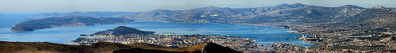 Vide se, s lijeva, Čiovo, dobar dio Splita i Solina, Perun, Trogir, Kaštela,
